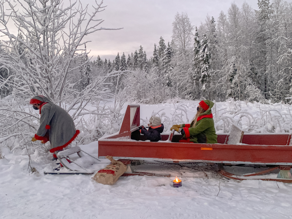 En la excursión privada viene a buscaros un elfo al alojamiento (en un ratio de 10km alrededor de Rovaniemi) y os lleva en «una caja mágica» hasta el bosque secreto de Papá Noel.