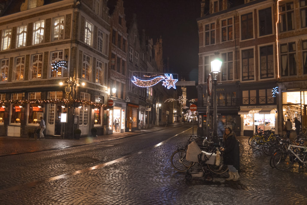 Al llegar era ya de noche y hacía frío, pero eso no nos impidió salir a conocer la ciudad. Fuimos directamente al centro a ver el mercado de navidad y las típicas casitas de Brujas. Estuvimos paseando por allí, cenamos y nos fuimos al hotel.