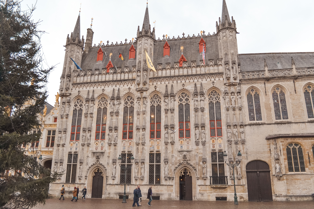 Y siguiendo nuestro recorrido y para terminar nos acercamos a la Plaza Burg. Una enorme plaza en la que se encuentra el ayuntamiento de Brujas, la basílica de la sagrada sangre y el palacio de la justicia. Una plaza que no deja indiferente a nadie, y además con ambientillo navideño.